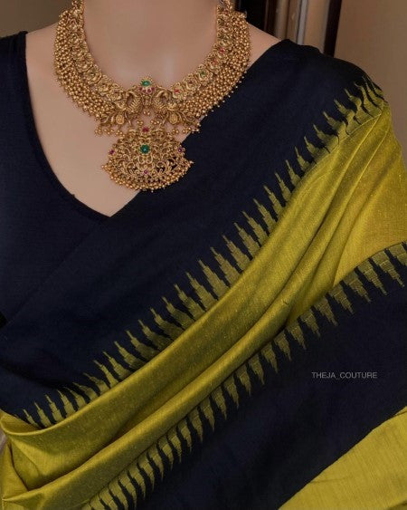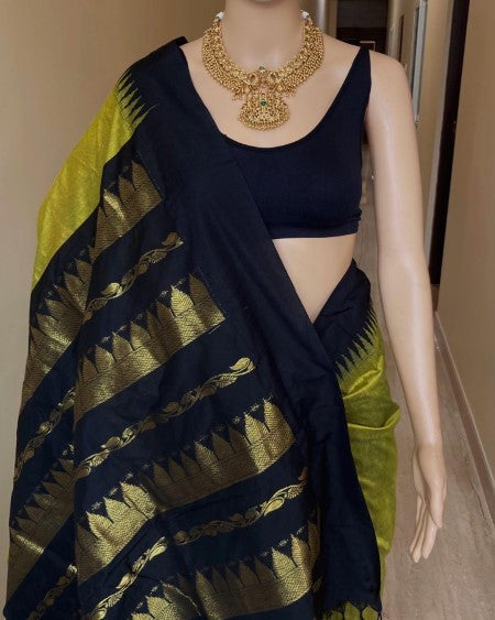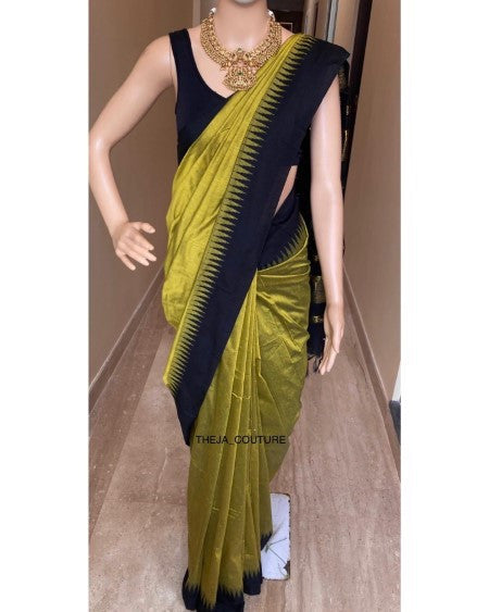 PEAR GREEN COTTON SILK SAREE WITH TEMPLE BORDER