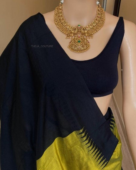 COMES WITH CONTRAST BLACK ZARI WORK PALLU AND PLAIN BLACK BLOUSE.