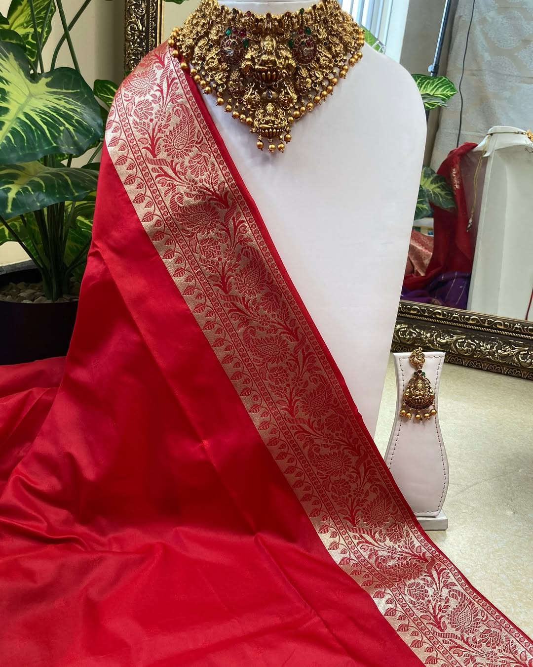 Purple two tone art silk saree with contrast red border and pallu. Comes with contrast red blouse.