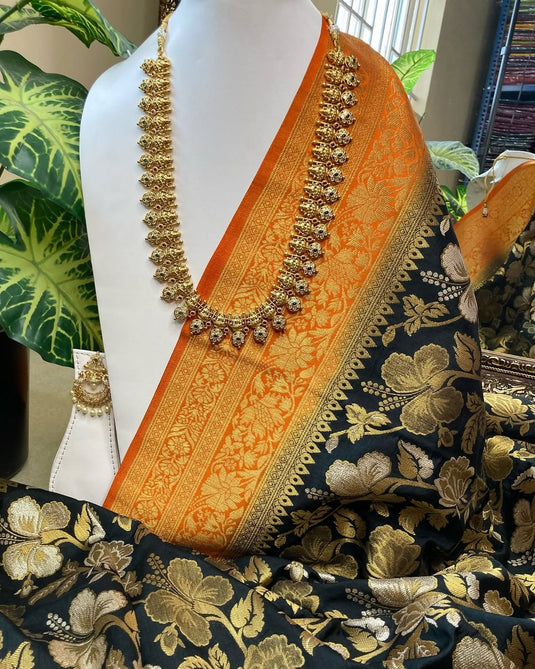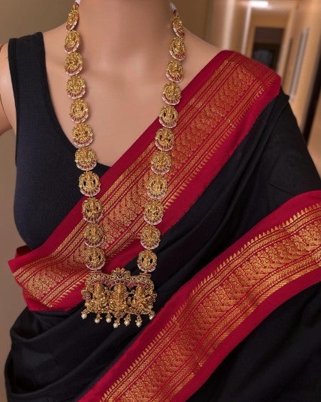 BLACK ART SILK SAREE WITH GOLDEN BORDER
