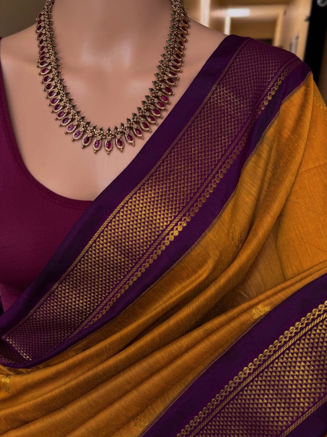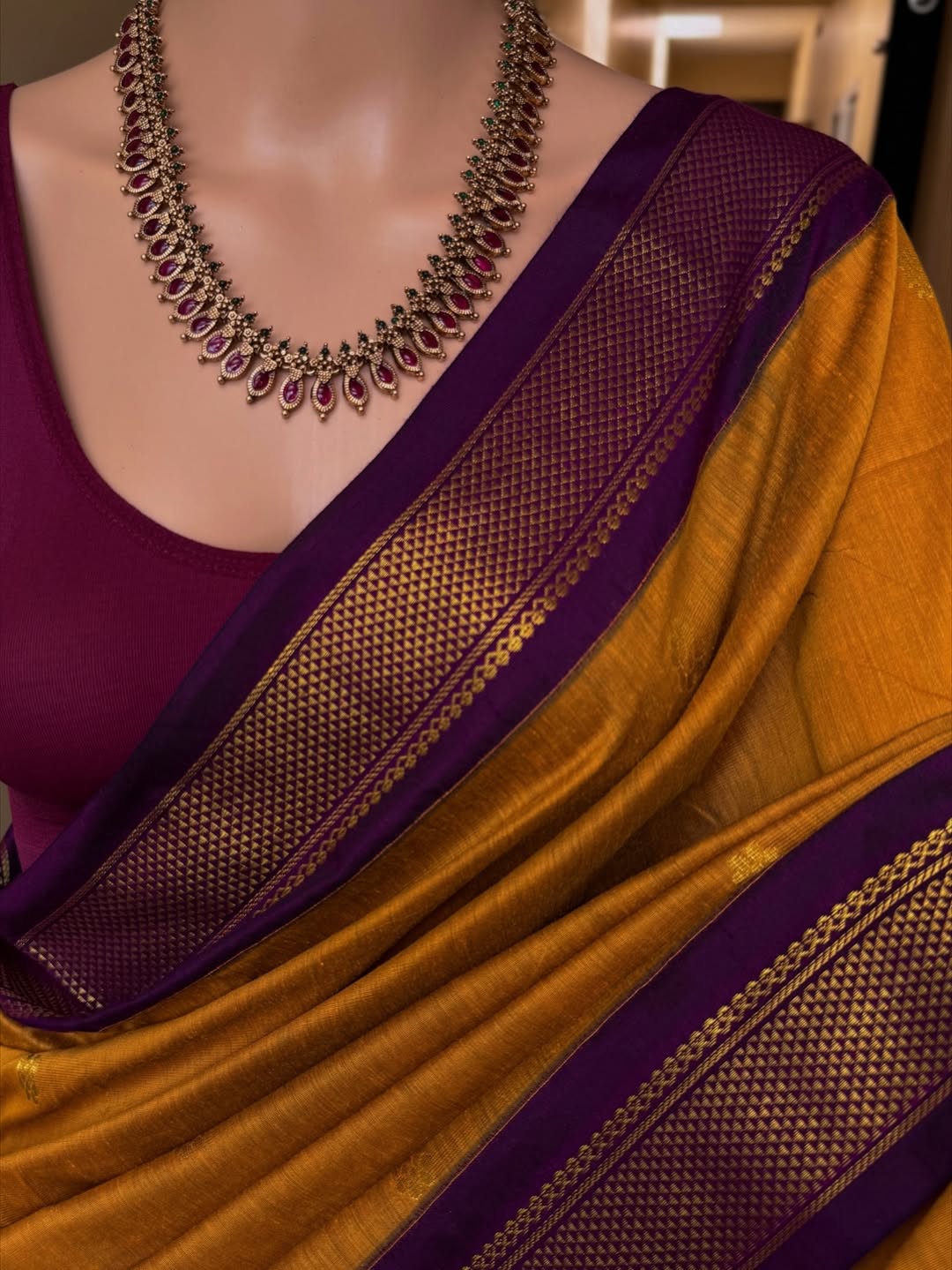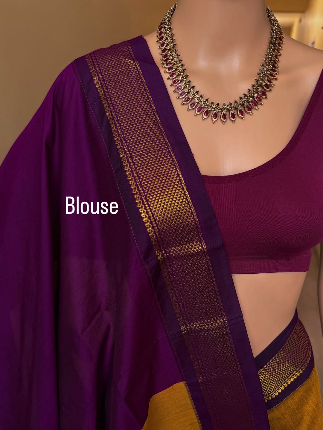 Border and pallu: contrast magenta.