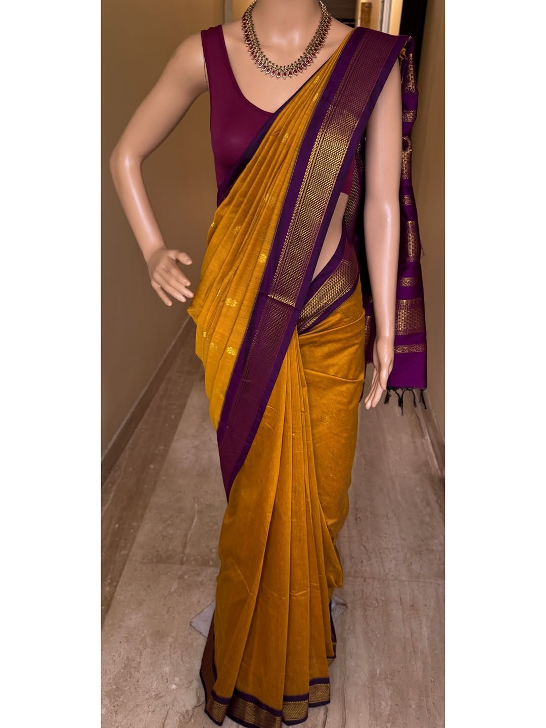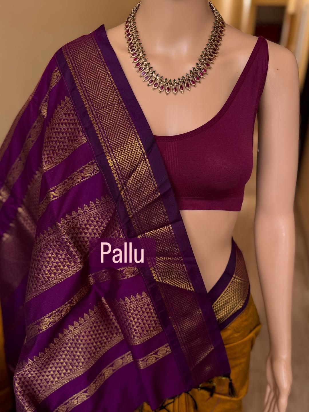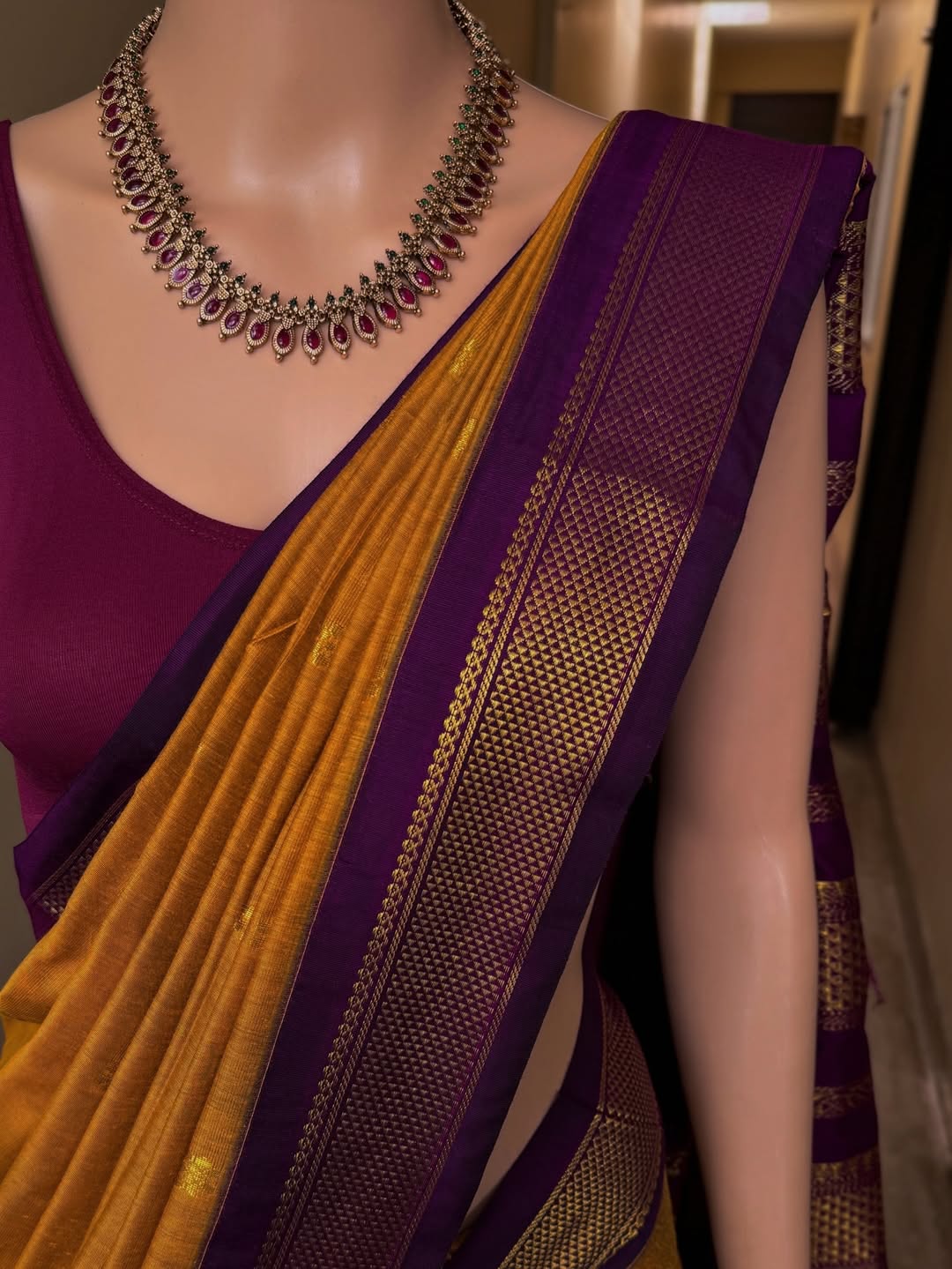 Border and pallu: contrast magenta.