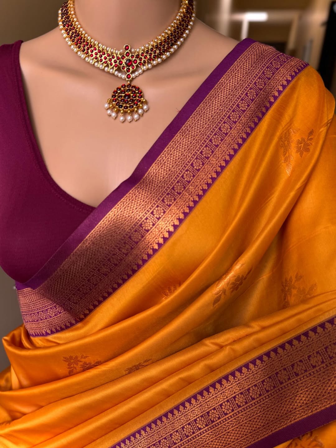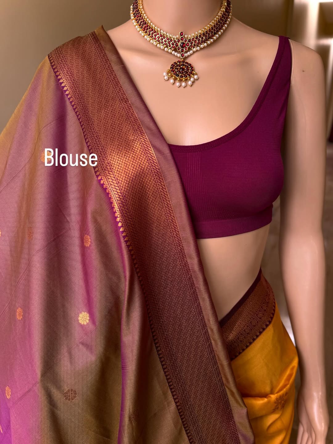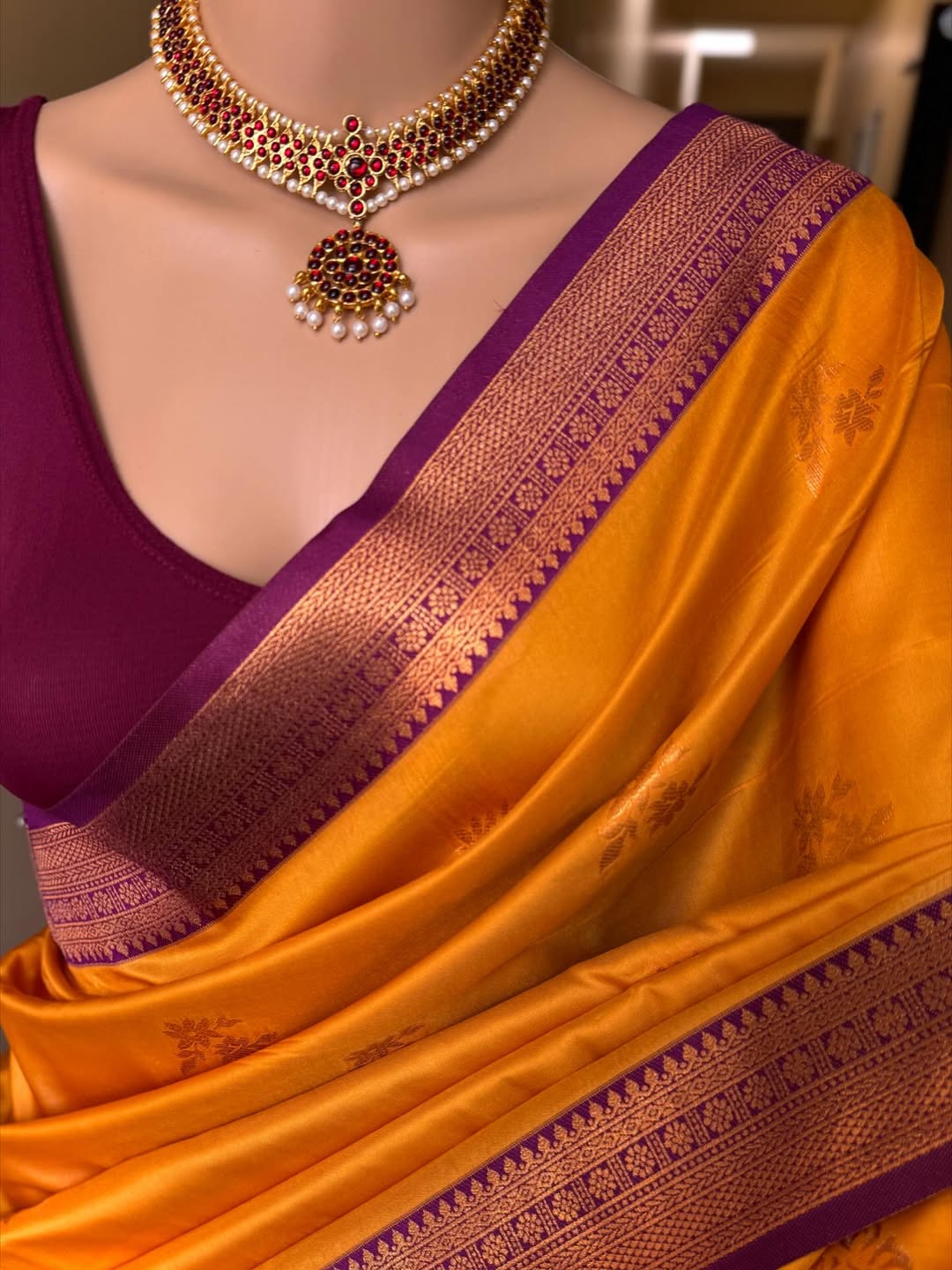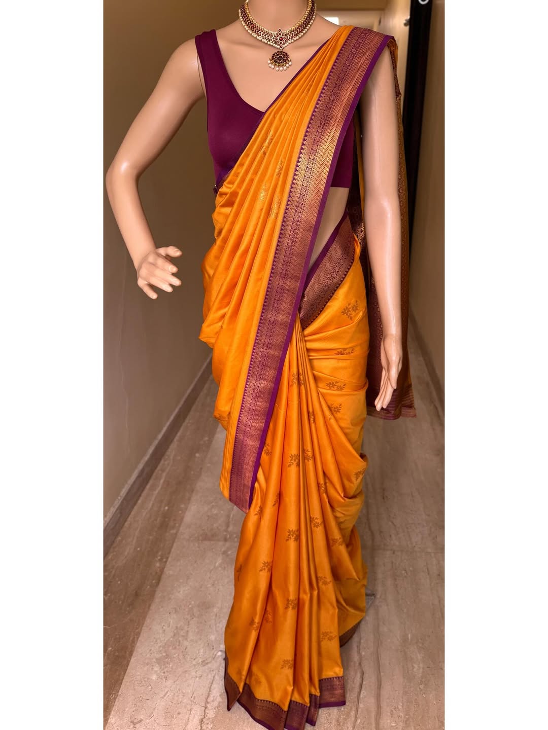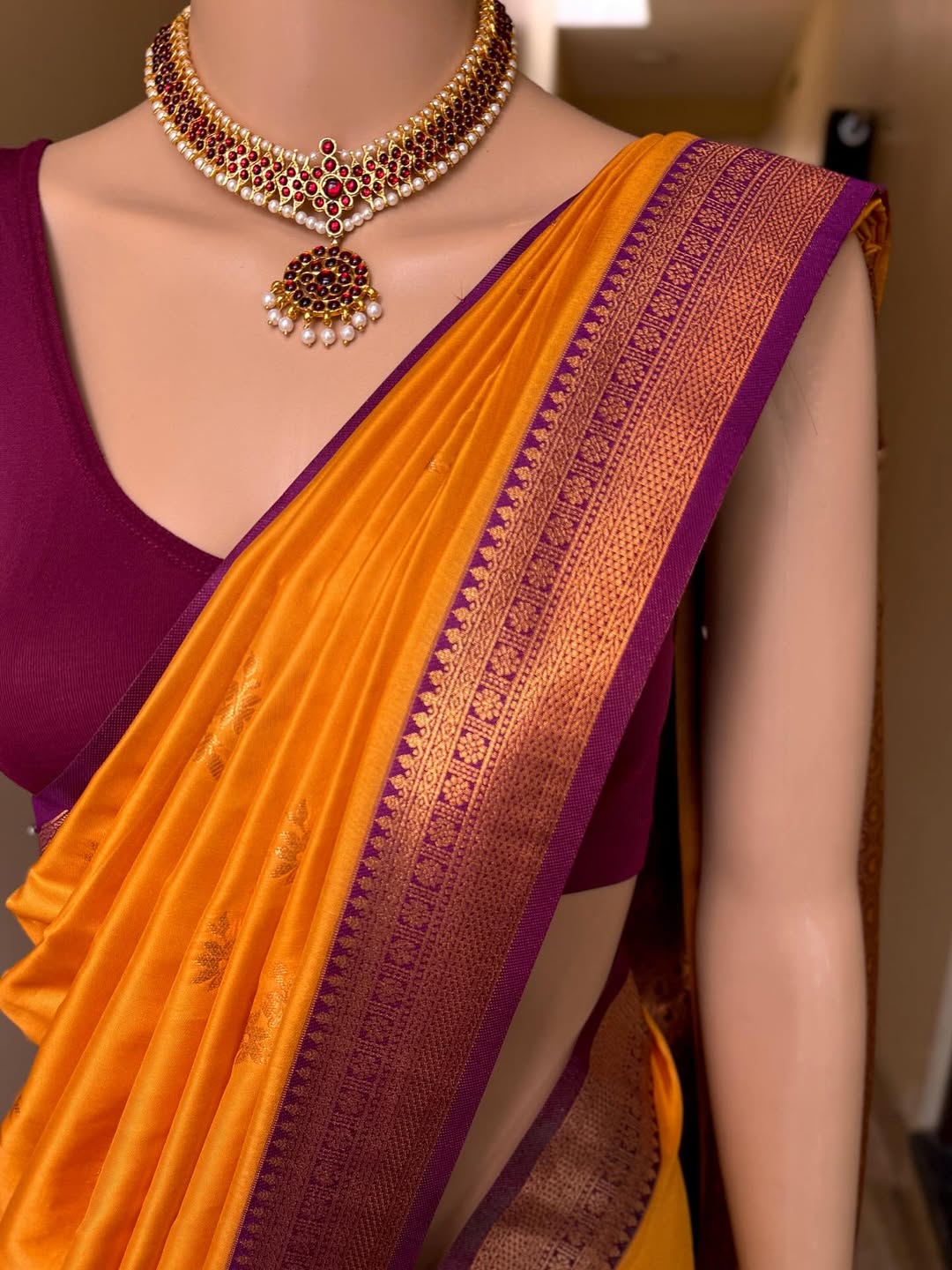 MANGO YELLOW DUAL TONE SOFT ART SILK SAREE